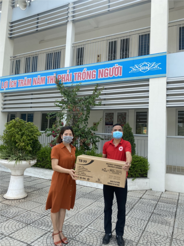 Hội Chữ Thập Đỏ xã Cổ Bi tặng quà nhà trường phục vụ công tác Phòng chống dịch bệnh Covid -19