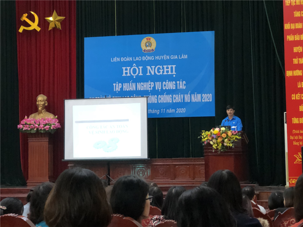 Sáng ngày 12/11/2020, LĐLĐ huyện Gia Lâm tổ chức Hội nghị Tập huấn nghiệp vụ công tác An toàn vệ sinh lao động, Phòng chống cháy nổ cho cán bộ Công đoàn từ huyện đến cơ sở năm 2020. Đại diện BCH Công đoàn trường Tiểu học Trung Thành có mặt tham gia Hội nghị.