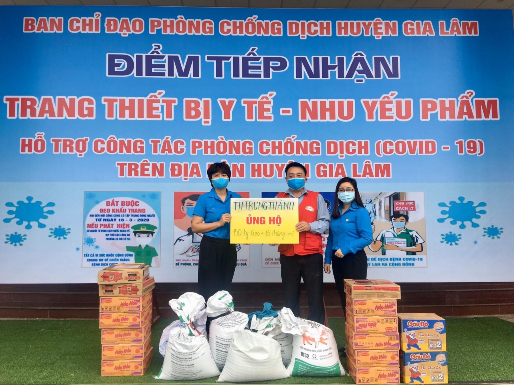 Sáng ngày 25/4/2020 BCH CĐ thay mặt tập thể nhà trường đã có mặt tại điểm tiếp nhận trang thiết bị y tế - nhu yếu phẩm hỗ trợ công tác phòng chống dịch Covid-19 trên địa bàn Gia Lâm đặt tại Nhà thi đấu Gia Lâm để ủng hộ với 150kg gạo, 15 thùng mì tôm. Tập thể nhà trường hi vọng với chút đóng góp sẽ góp phần giúp người dân địa phương mình bớt đi phần nào những khó khăn đồng thời nuôi dưỡng tinh thần, tấm lòng nhân ái của mỗi cá nhân.