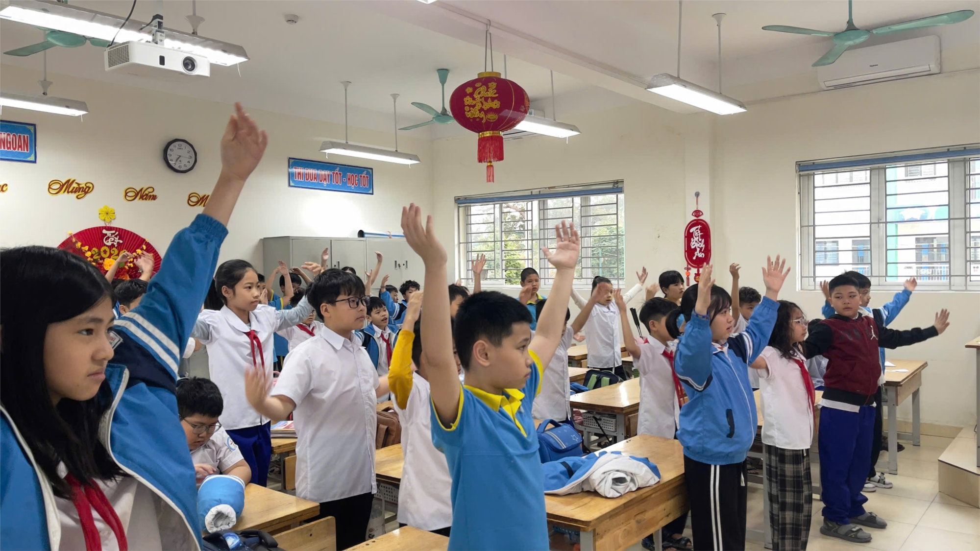 Trong các giờ truy bài và hoạt động tập trung, các em học sinh hào hứng luyện tập từng động tác, phối hợp nhịp nhàng theo nền nhạc sôi động. Không khí luyện tập diễn ra rất vui tươi, thể hiện tinh thần đoàn kết, năng động và niềm tự hào của đội viên, thiếu nhi.