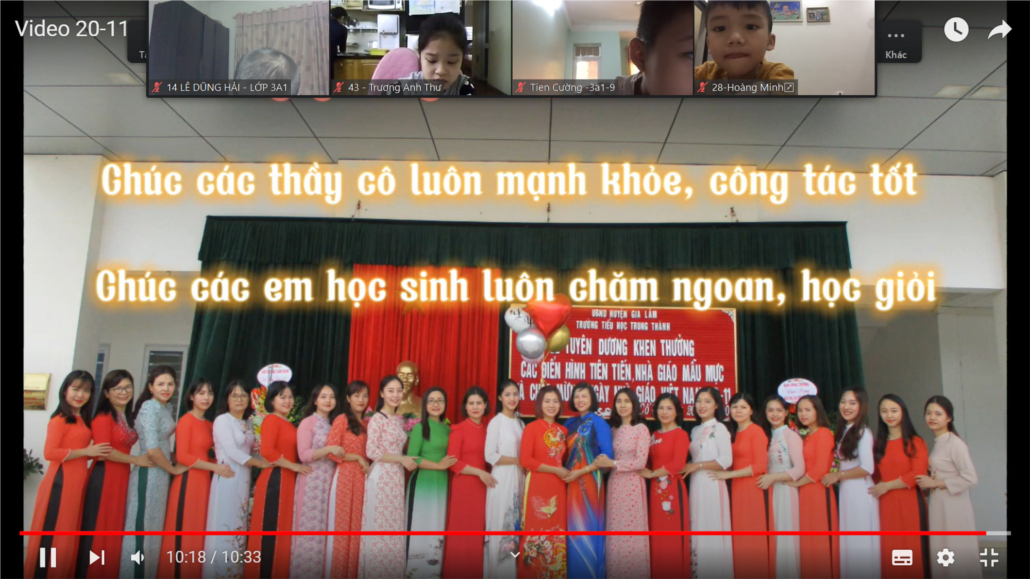 Hình ảnh các con học sinh lớp 3A1 rất chú ý, lắng nghe và tặng những lời chúc tốt đẹp nhất tới các thầy giáo, cô giáo.