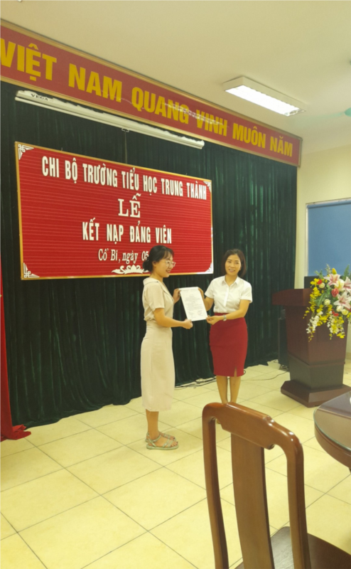 Chi bộ trường Tiểu học Trung Thành có thêm một đảng viên, chi bộ có thêm sức mạnh sẽ hoàn thành thắng lợi nhiệm vụ của chi bộ trong thời gian tiếp theo.