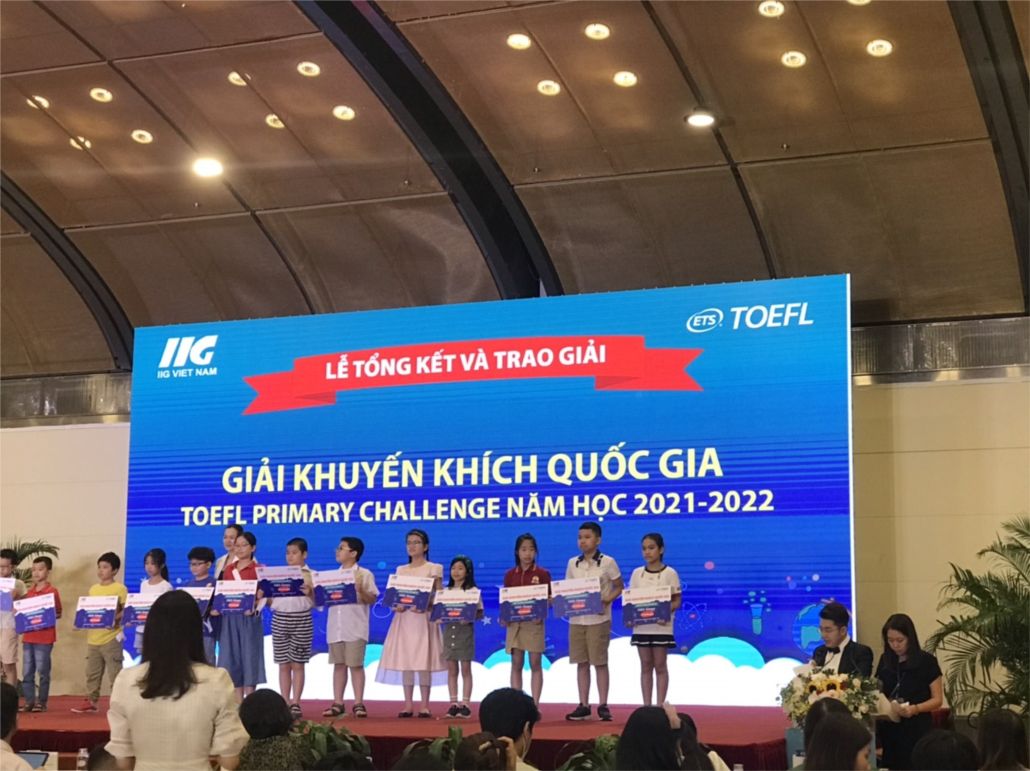 Ngày 27/8/2022 cô giáo Nguyễn Thị Mai- PHT nhà trường cùng với HS Nguyễn Khoa An lớp 5A3 đã dự Lễ Tổng kết và trao giải cuộc thi Tiếng Anh quốc tế TOEFL challenge năm học 2020-2021; 2021-2022 tại Trung Tâm Hội nghị Quốc Gia. Rất vinh dự cho cô trò nhà trường, em Nguyễn Khoa An đã xuất sắc giành giải nhì Thành phố và giải khuyến khích quốc gia năm học 2021-2022.